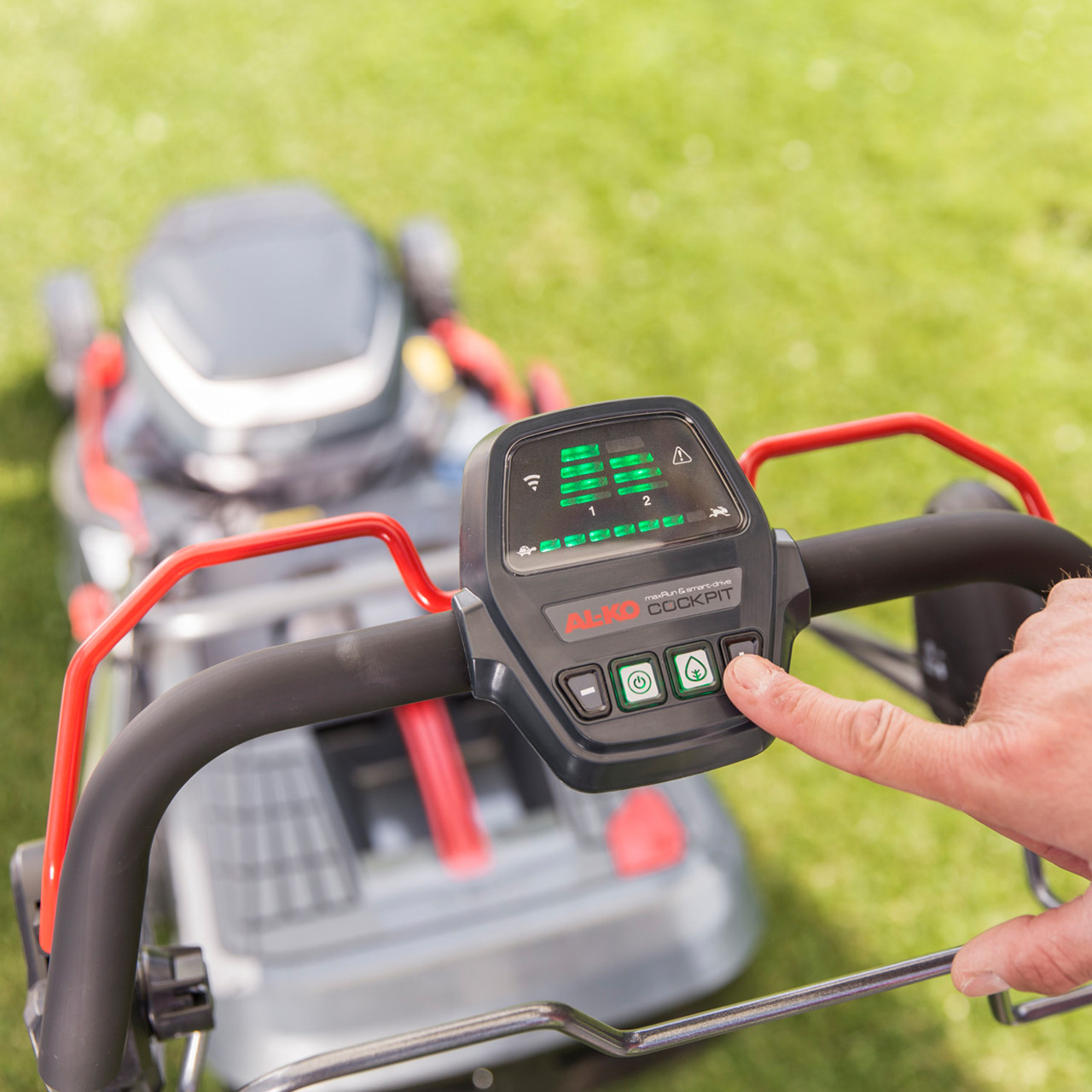 “Pametni” AL-KO model vrhunskog dizajna nudi vam praktično upravljanje putem Smart Cockpita. AL-KO kosilica 512 Li VS-W Premium razvijena je u Njemačkoj i proizvedena u Austriji. Zahvaljujući inovativnim komponentama kao što je litij-ionska baterija, AL-KO 512 Li VS-W Premium je dugoročni partner za vaš vrt. MaxRun & Smart Cockpit omogućuje vam prikaz različitih aktivnosti kao što su status napunjenosti baterije, povezanost ili poruke o pogreškama. Ova se funkcija također može koristiti za regulaciju brzine i za aktiviranje načina rada za uštedu energije s funkcijom Eco-Mode. Uz funkciju pametne tipke, plavo svjetlo signalizira da je uspostavljena veza s vašom aplikacijom AL-KO inTouch. Status punjenja baterija također se može očitati po boji pomoću ovog gumba. Zeleno signalno svjetlo znači potpuno napunjen. Crvena boja označava da je bateriju potrebno napuniti. Litij-ionska baterija od 36 V osigurava učinkovit rad na travnjacima do 500 – 1000 m2. Zahvaljujući Li-Ion ćelijama, ova baterija je iznimno dugotrajna bez samopražnjenja. Baterija se puni za 120 minuta. Praktično 7-struko centralno podešavanje visine košnje s kojim se visina rezanja može podesiti između 30 i 80 mm. Velika prihvatna košara s indikatorom razine napunjenosti ima kapacitet od 70 l i učinkovito se puni zahvaljujući aerodinamičnom obliku kućišta. Ergonomski upravljač i kotači s kugličnim ležajevima omogućuju vam košenje travnjaka bez umora. Širina košnje od 51 cm i Vario pogon kotača koji štedi energiju osiguravaju učinkovitu košnju. Uključujući klin za malčiranje i funkciju bočnog pražnjenja. Baterija je prikladna za sve uređaje iz obitelji AL-KO 36 V.