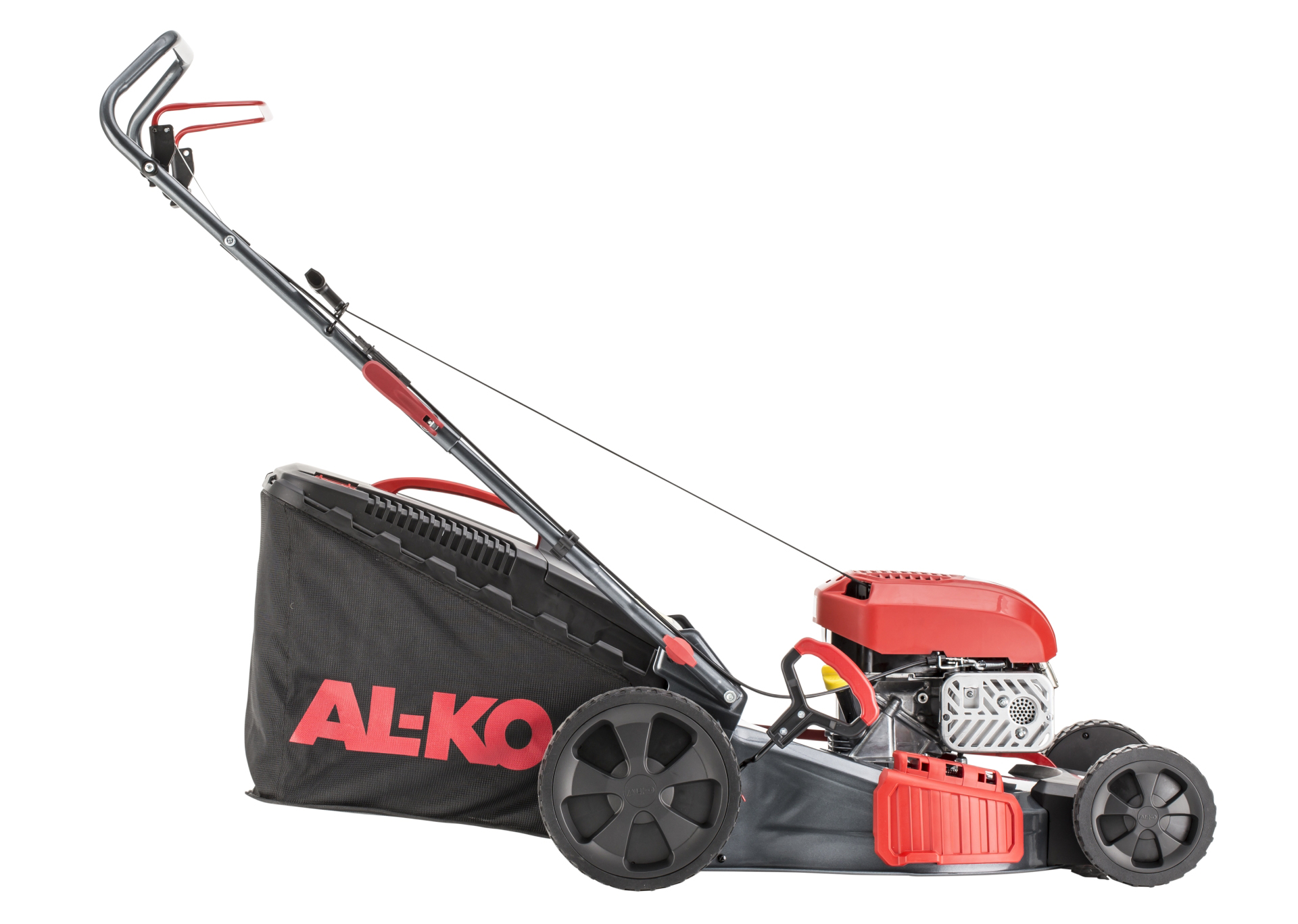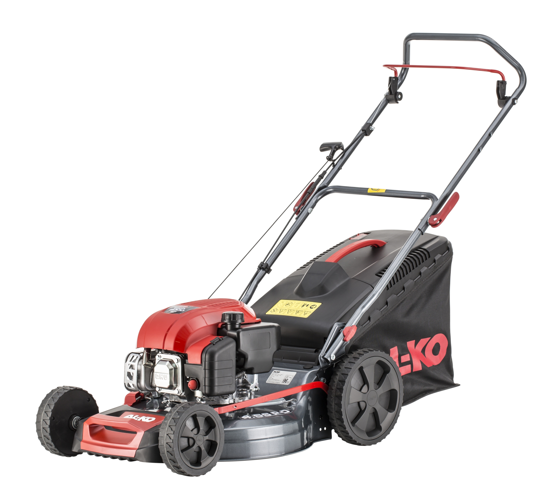 Benzinska kosilica AL-KO Easy 4.66 P-D iz EASY serije predstavlja snažno i praktično rješenje za travnjake do 1.200 m2. Zahvaljujući robusnom čeličnom kućištu i pouzdanom motoru, osigurava dug vijek trajanja i stabilne performanse uz odličan omjer cijene i kvalitete. Radna širina od 46 cm omogućuje učinkovitu košnju, dok se visina reza podešava centralno u 7 položaja (25 – 75 mm) jednom rukom. Funkcija 4u1 pruža potpunu fleksibilnost – košnja, sakupljanje, malčiranje i bočno izbacivanje – kako bi se kosilica prilagodila različitim uvjetima travnjaka. Pouzdani AL-KO Tech 5000 motor snage 1,9 kW (131 ccm) s automatskim prigušivačem i primerom omogućuje lako pokretanje i stabilan rad. Aerodinamično čelično kućište poboljšava protok zraka i optimizira punjenje košare od 65 L s indikatorom napunjenosti, čime se smanjuje potreba za čestim pražnjenjem. Kotači s dvostrukim kugličnim ležajevima (255 mm straga, 180 mm sprijeda) osiguravaju lagano guranje i dobro prianjanje, a ergonomska, po visini podesiva i sklopiva ručka omogućuje udoban rad i jednostavno skladištenje. Prednja transportna ručka dodatno olakšava premještanje kosilice.