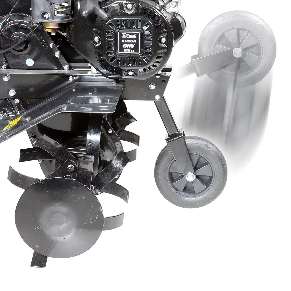 Motorna benzinska kopačica Bertolini BT195 snažan je i pouzdan stroj namijenjen pripremi tla prije sadnje, obradi vrtova, manjih poljoprivrednih površina i zelenoj gnojidbi. Opremljena je kvalitetnim EMAK K800 HT OHV motorom obujma 182 cm3 i snagom od 5,7 KS koji osigurava stabilan rad i visoku učinkovitost čak i u zahtjevnijim uvjetima. Zahvaljujući mjenjaču s dvije brzine, uključujući hod unazad, omogućuje lako manevriranje i prilagodbu različitim vrstama tla. Radna širina rotora od 82 cm, koja se može smanjiti na 55 cm, pruža fleksibilnost u radu na užim i širim površinama, dok podesivi upravljač u tri vertikalna položaja osigurava ergonomiju i udobnost pri radu. Robusna konstrukcija, prednji transportni kotač i lančani prijenos čine ovu kopačicu pouzdanim izborom za korisnike koji traže dugotrajan i učinkovit alat.