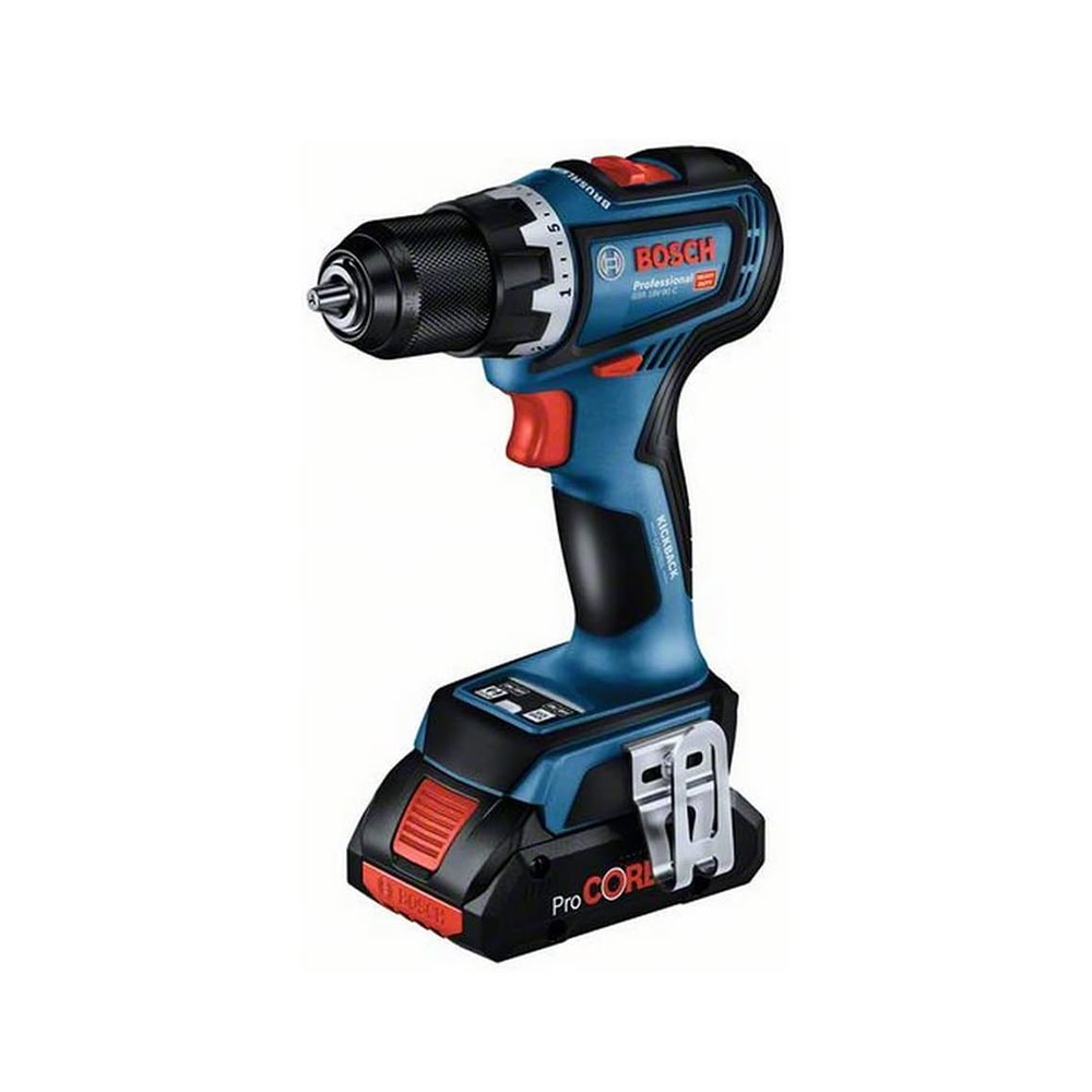 Bosch GSR 18V-90 C profesionalna je akumulatorska bušilica-izvijač koja se ističe svojim snažnim beskontaktnim motorom koji pruža impresivnu snagu od 64 Nm i brzinu od 2100 min-1, osiguravajući maksimalnu učinkovitost u radu. Opremljena je robusnom metalnom steznom glavom od 13 mm koja omogućuje izvrsni prijenos okretnog momenta za sve vrste poslova. Posebno se ističe naprednim sigurnosnim značajkama poput KickBack Control sustava i precizne spojke, koji pružaju savršenu kontrolu i maksimalnu zaštitu korisnika i alata. Baterije i punjači potpuno su kompatibilni s Bosch Professional 18V sustavom i brojnim drugim uređajima AMPShare platforme za baterije.