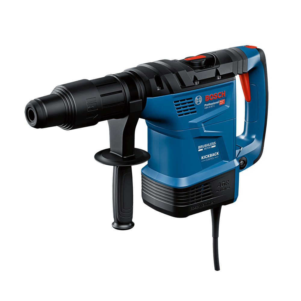 Bosch GBH 6-42 C profesionalni je bušaći čekić sa SDS plus sustavom, dizajniran za najzahtjevnije poslove bušenja i rada s dlijetom. Ovaj snažni alat od 1.300 W pruža impresivnu energiju udarca od 9 J, što ga čini idealnim za rad u betonu s promjerom bušenja do 42 mm. Opremljen je naprednim sigurnosnim značajkama uključujući KickBack Control i Vibration Control sustave, te sigurnosnu spojku koja maksimalno štiti korisnika. Posebno se ističe ergonomskim dizajnom s anti-vibracijskom ručkom koja smanjuje umor tijekom rada. Zahvaljujući beskontaktnom motoru i naprednom korisničkom sučelju s mogućnošću povezivanja s aplikacijom, ovaj alat predstavlja vrhunsko rješenje za profesionalnu upotrebu.