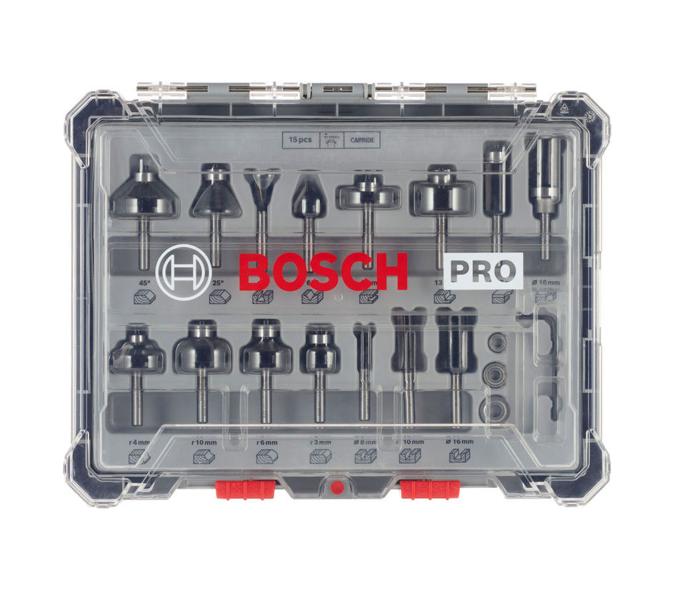 Ovaj mješoviti set glodala PRO s prihvatom od 6 mm namijenjen je preciznoj obradi drva i omogućuje čiste, kontrolirane i profesionalne rezove u različitim vrstama profila. Visokokvalitetni karbidni rezači osiguravaju dug vijek trajanja i pouzdane rezultate, dok laserske oznake s tehničkim podacima i indikatorom minimalne dubine umetanja olakšavaju pravilnu i sigurnu montažu. Poboljšana geometrija reznog ruba dodatno smanjuje rizik od povratnog udara, čineći rad ugodnijim i stabilnijim. Set obuhvaća širok raspon glodala za ravne, profilne, utorne, skošene i radijusne rezove, što ga čini svestranim izborom za hobi i profesionalne korisnike.