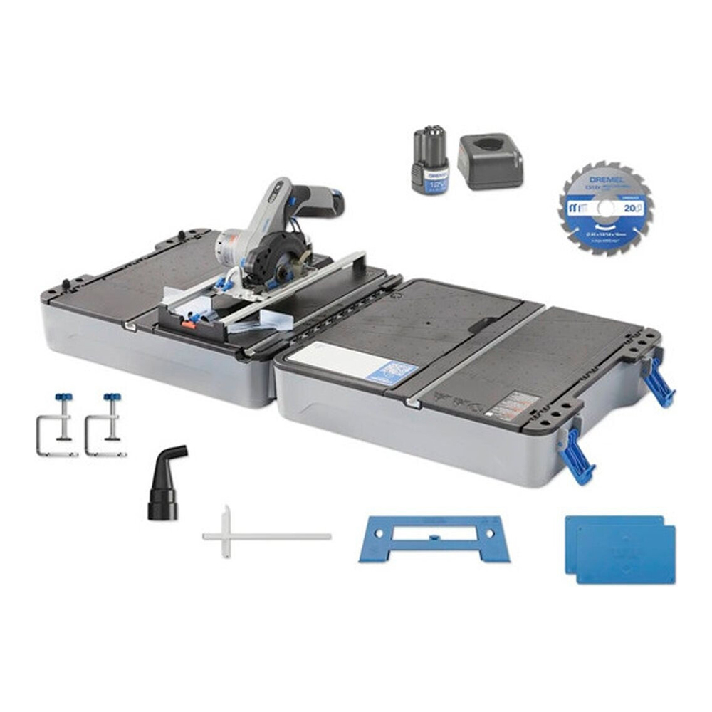 Compact Saw with Station 12V Blueprint je akumulatorska kružna pila kompaktnih dimenzija koja dolazi s radnom stanicom, idealna za precizne i zahtjevne rezove. Opremljena Li-ion akumulatorom od 12V/2,0 Ah i motorom bez četkica, pila pruža promjenjivu brzinu do 5.000 okretaja u minuti. Dubina rezanja iznosi 25,4 mm pri 0° i 15,9 mm pri 45°, dok integrirana laserska linija omogućuje precizno vođenje tijekom rada. Radna stanica dodatno povećava svestranost i stabilnost alata, čineći ga pogodnim za razne projekte. S neto težinom od 0,944 kg, alat je lagan i jednostavan za rukovanje.