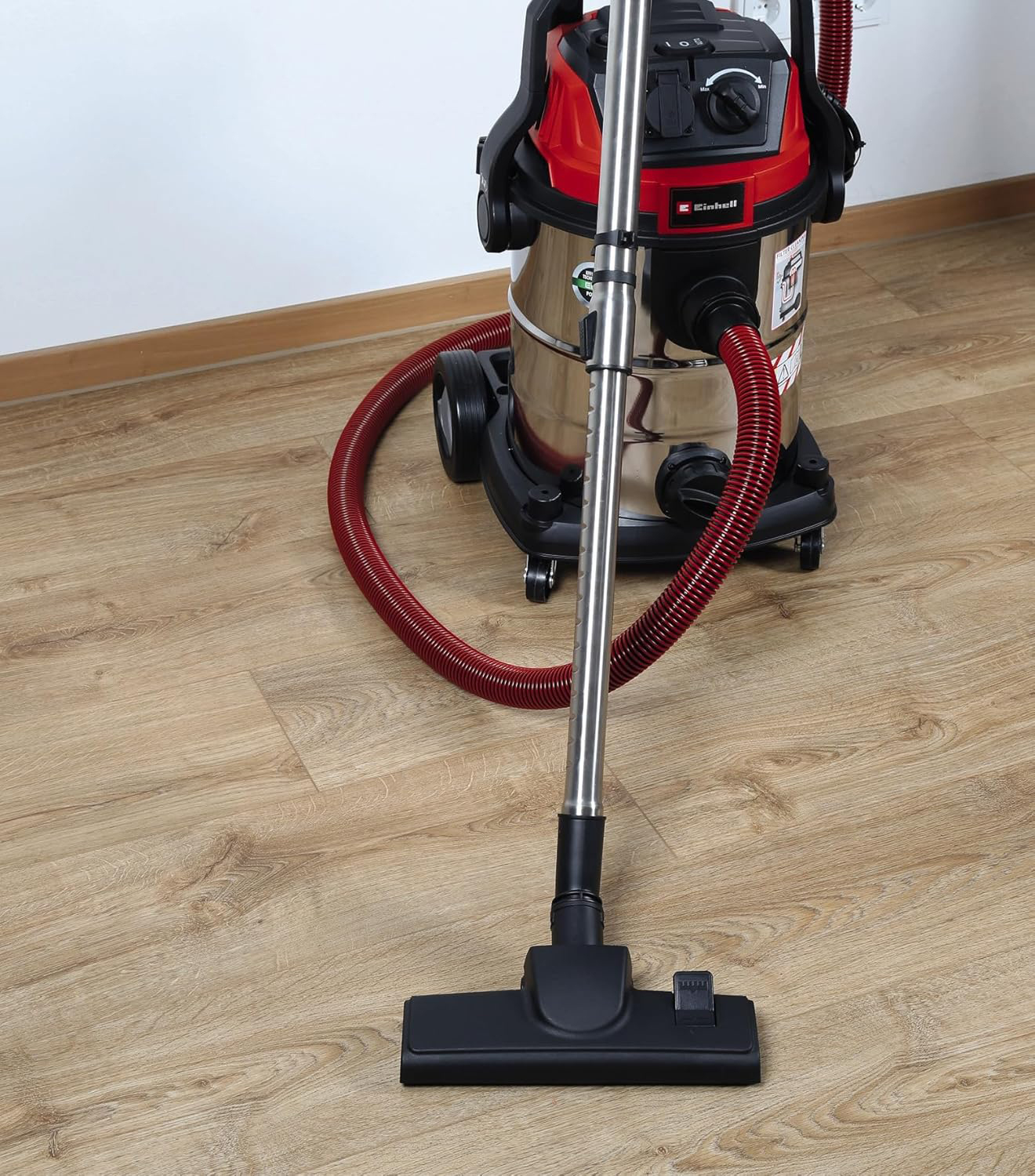 Einhell podna mlaznica s kotačićima praktičan je dodatak za sve Einhell mokro-suhe i akumulatorske mokro-suhe usisavače. Namijenjena je učinkovitoj i nježnoj obradi različitih podnih površina, uključujući parket, laminat, pločice, glatke podove i tepihe. Zahvaljujući integriranim kotačićima, mlaznica se lako i glatko pomiče po podu bez grebanja, što osigurava ugodno i kontrolirano usisavanje. Preklopni mehanizam omogućuje brzo prebacivanje između čišćenja tvrdih podova i tepiha, čime se prilagođava različitim situacijama bez promjene dodatka. Širina od 28 cm omogućuje brzo pokrivanje većih površina, dok standardni priključak promjera 36 mm osigurava kompatibilnost s velikim brojem Einhell usisavača. Mlaznica je prikladna za suho i mokro usisavanje, što je čini univerzalnim rješenjem za kućanstvo, radionicu i garažu.
