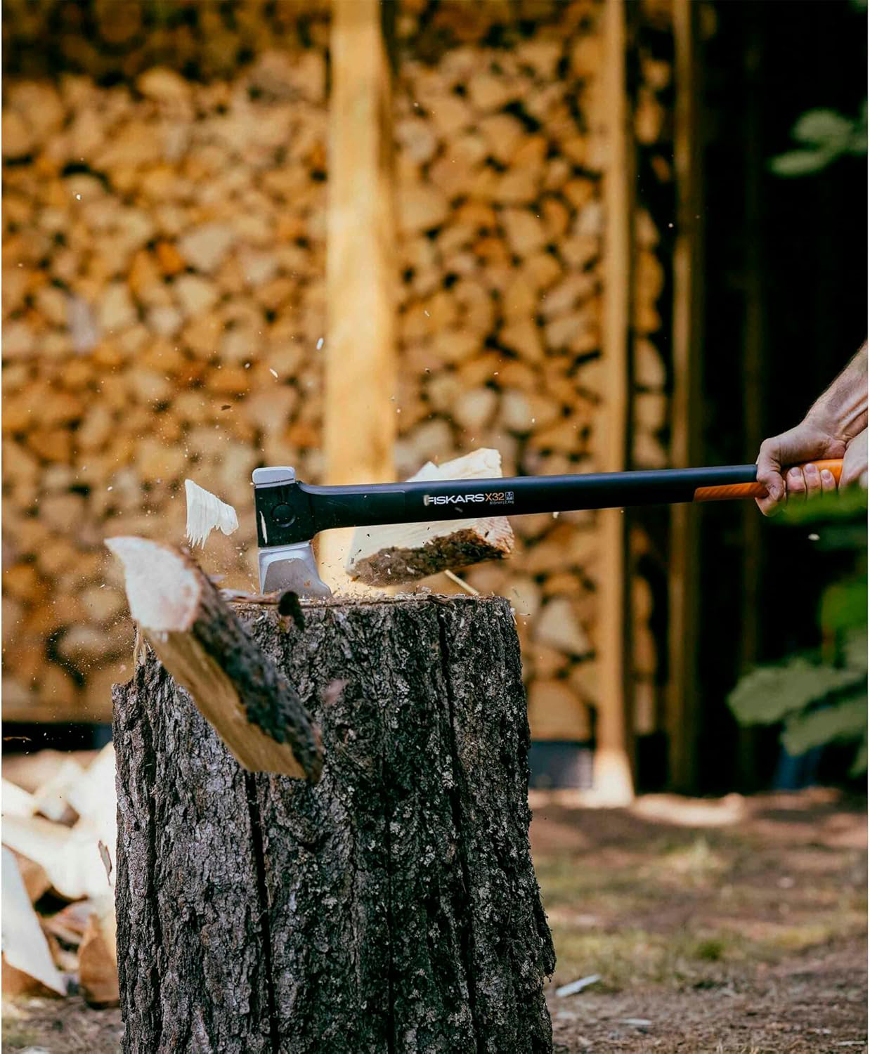 Sjekira za cijepanje Fiskars X-series X32 dizajnirana je za učinkovito cijepanje velikih trupaca promjera većeg od 30 cm. Zahvaljujući naprednom dizajnu pete generacije Fiskars X-serije, ova sjekira pruža izvrsnu ravnotežu, veću brzinu zamaha i snažniji udarac, čime se drvo može rascijepiti već pri prvom udarcu. Oštrica od dvostruko kaljenog kovanog čelika izuzetno je oštra i dugotrajna, dok specijalni premaz s niskim trenjem omogućuje lakše prodiranje u drvo i dodatnu zaštitu od korozije. Širi oblik oštrice i klin za cijepanje povećavaju učinkovitost cijepanja te olakšavaju vađenje oštrice iz drva. FiberComp™ drška izuzetno je lagana, čvrsta i gotovo nesalomljiva, a istovremeno apsorbira udarce kako bi smanjila opterećenje na ruke. Predimenzionirana SoftGrip™ zona rukohvata pruža bolju kontrolu i udobnost tijekom rada, dok zakačeni završetak drške povećava sigurnost držanja. Sjekira dolazi s zaštitnom navlakom za sigurnije skladištenje i transport te je dizajnirana u Billnäsu u Finskoj, uz više od 350 godina tradicije izrade kovanih alata.