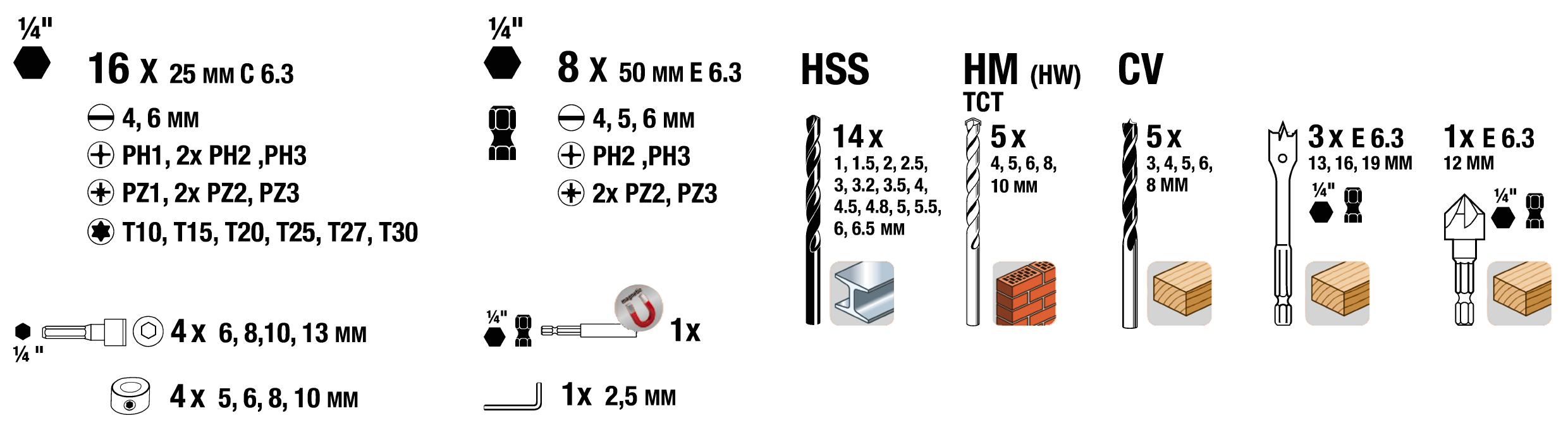 KWB set svrdala i bitova Standard u plastičnom kovčegu 62/1