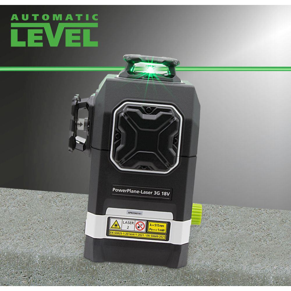 PowerPlane-Laser 3G Multi-18V je profesionalni 3D zeleni laser koji projicira jednu horizontalnu i dvije vertikalne 360° laserske linije za precizno poravnavanje u cijeloj prostoriji. Zahvaljujući PowerGreen++ tehnologiji svjetline, linije su jasno vidljive i do 60 metara, čak i pri slabijim svjetlosnim uvjetima. Posebno se ističe kompatibilnošću s 18V baterijskim sustavima renomiranih proizvođača (putem odvojenog PowerAdaptera), što omogućuje besprijekornu integraciju u postojeći alat korisnika. Uređaj nudi niz funkcija kao što su ručno poravnavanje kosina, MicroControl za precizno fino podešavanje bez pomicanja uređaja, CentrePoint za stabilne referentne točke, te sinkrono označavanje poda i stropa. Može raditi na bateriju ili mrežno napajanje, a integrirani način rada s prijemnikom čini ga pogodnim i za vanjske radove na većim udaljenostima. Zahvaljujući snažnom magnetskom nosaču i aluminijskoj nožici, uređaj je stabilan i lako se pričvršćuje na različite površine, uključujući profile u suhoj gradnji.