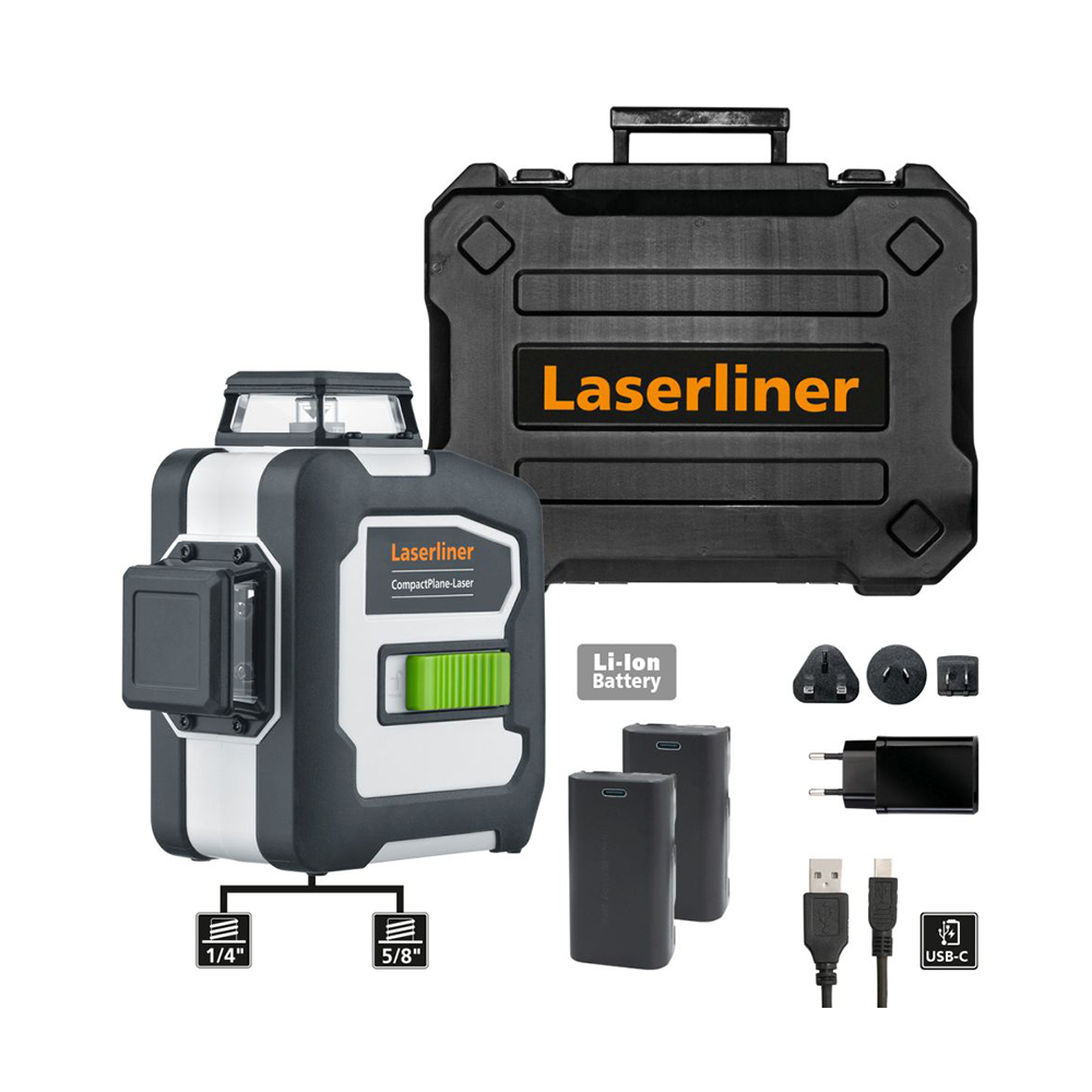 CompactPlane-Laser 3G Pro je profesionalni 3D zeleni laser koji projicira jednu horizontalnu i dvije vertikalne 360° laserske linije za precizno poravnavanje objekata. Zahvaljujući zelenoj laserskoj tehnologiji, linije su jasno vidljive čak i pri nepovoljnim svjetlosnim uvjetima. Funkcija ručnog nagiba omogućuje jednostavno poravnavanje kosina, dok digitalno sučelje i besplatna Commander aplikacija omogućuju praktično daljinsko upravljanje putem pametnog telefona. Funkcija samoniveliranja i zaštita od pogrešaka kod nagiba jamče visoku pouzdanost mjerenja, a integrirani način rada s prijemnikom omogućuje upotrebu na otvorenom i na većim udaljenostima. Uređaj je kompaktan, opremljen zaštitom klatna za siguran transport te dolazi s dodatnom baterijom za dulji radni vijek. Punjenje je moguće putem USB-C kabela.