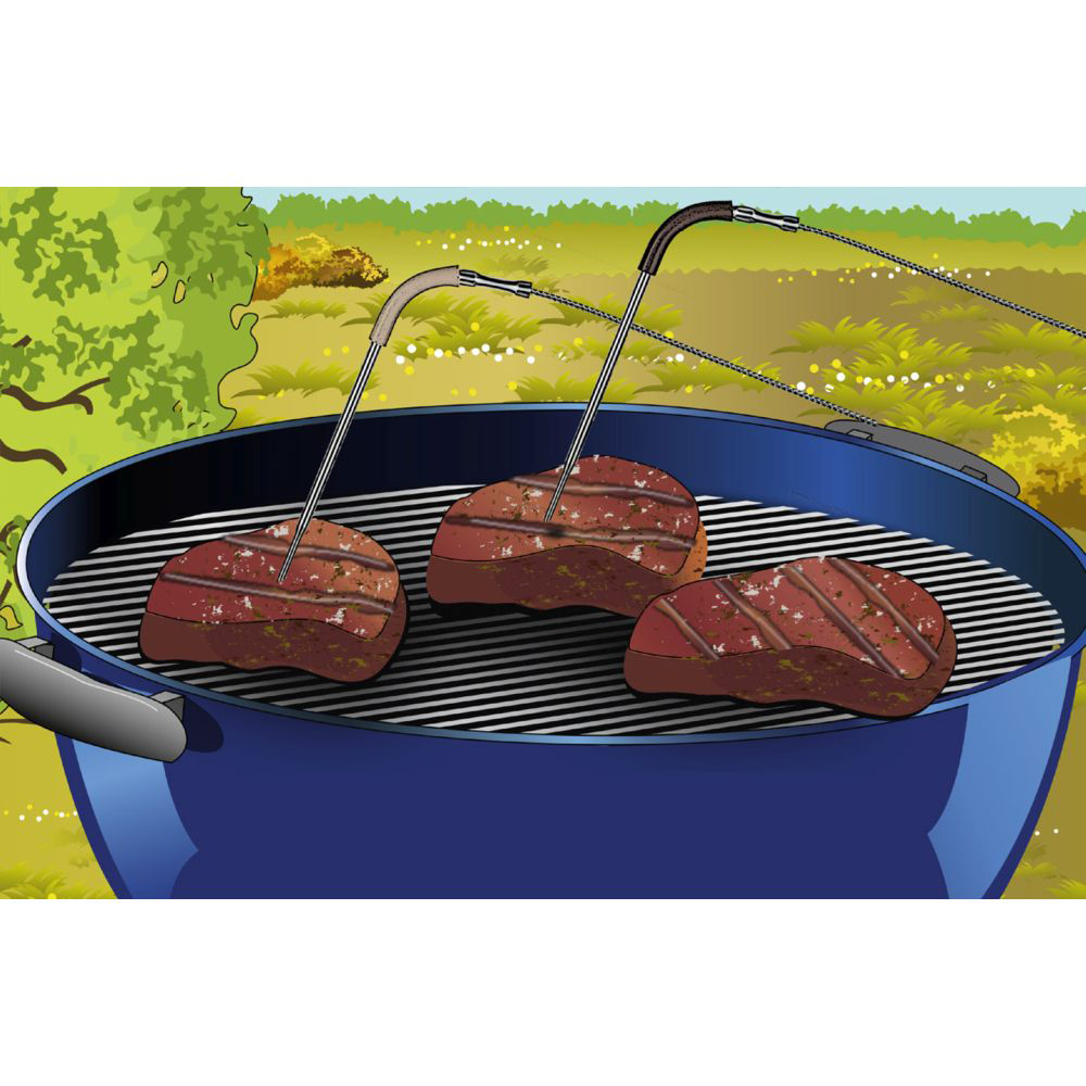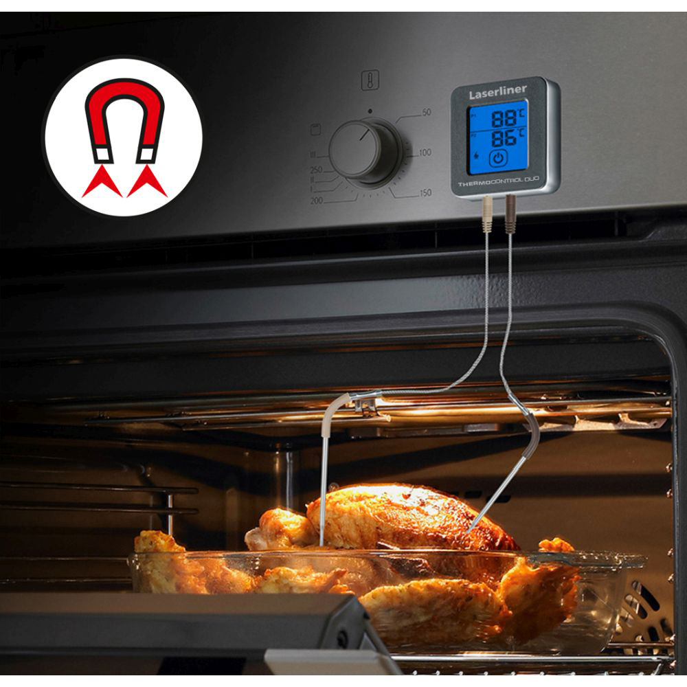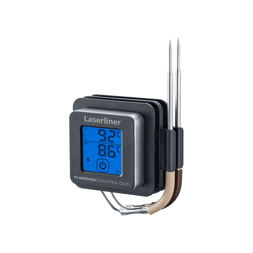 ThermoControl Duo je digitalni termometar za precizno praćenje stupnja pečenja i jezgrene temperature mesa, peradi i ribe. Opremljen je s dvije sonde koje omogućuju istodobno mjerenje na dvije točke. Zahvaljujući otpornosti na toplinu do 350 °C i snažnim magnetima, uređaj se lako pričvršćuje na pećnicu ili roštilj. Putem ThermoControl aplikacije i Digital Connection sučelja moguće je podešavanje ciljane temperature, odabir vremena pečenja i praćenje unaprijed definiranih stupnjeva pečenja (rare, medium rare, medium, medium well, well done). Aplikacija daje optičke i zvučne signale kako bi se spriječilo prekomjerno pečenje, dok jasan zaslon prikazuje trenutačnu temperaturu, postavke i odabrani stupanj pečenja. Automatsko isključivanje štedi energiju kada uređaj nije u uporabi.