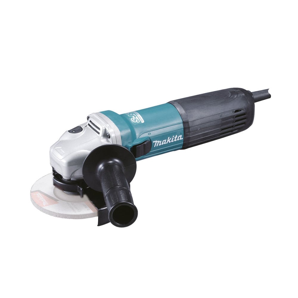 Makita Sustav Super-Joint štiti korisnika i motor od opasnih povratnih udaraca u slučaju preopterećenja ili priklještenja brusne/rezne ploče. Prilikom okretanja motora stišće se spajajuća opruga te se čvrsto omota oko pogonske opreme što omogućava prijenos okretnog momenta do brusne/rezne ploče. U slučaju priklještenja ili preopterećenja brusna/rezna ploča se zaustavlja što omogućava rastezanje spajajuće opruge. U tome slučaju, glavna osovina sklizne te omogućava rad motora bez prijenosa okretnog momenta do brusne/rezne ploče – ploča se zaustavi. Na taj način sprječava se ozljeda korisnika zbog gubitka kontrole te štiti motor od kvarova u kritičnim situacijama. Uređaj možete ugasiti uklanjanjem priklještene ploče te njenom zamjenom ako je oštećena. Kada je pritisak na ploči otpušten ili kada je ploča otpuštena, motor stisne spajajuću oprugu te se brusna/rezna ploča nastavlja vrtjeti radnom brzinom što omogućuje nastavak vašeg rada.