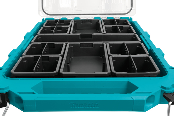Makita P-91051 niski srednji organizator pruža savršenu organizaciju sitnih dijelova, vijaka, tiplova i ostalih pribora zahvaljujući kompaktnom, niskoprofilnom dizajnu. Sa zapremninom od 8,14 litara, ovaj lagani, ali izdržljivi organizator izrađen je od kopolimera otpornog na udarce, što ga čini pouzdanim izborom za profesionalce i hobi majstore.