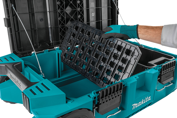 Dodatne značajke poput unutarnjih organizacijskih pregrada MOLLE, velike ladice za pohranu i sigurnosnih točaka za lokot i praćenje čine ovu kutiju idealnom za zahtjevna gradilišta i radionice. Inovativni horizontalni dizajn omogućuje slaganje do tri kutije i jednostavan pristup alatu u svakom trenutku.