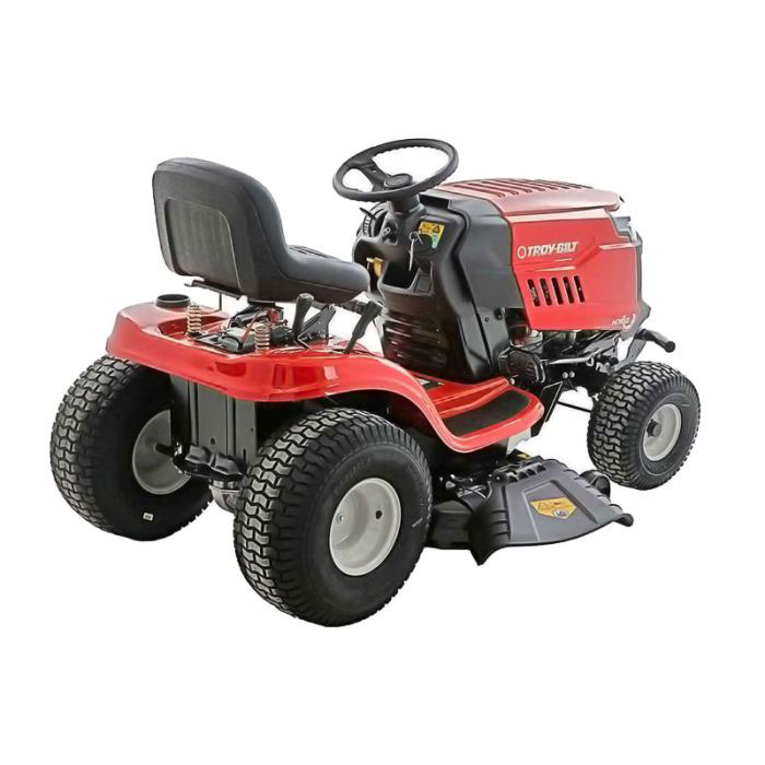 Traktor za travu MTD Troy Bilt Horse 107T-S dio je asortimana vrhunskih strojeva za košenje trave na vrlo velikim zelenim površinama, koje pokrivaju do 5500 kvadratnih metara. Troy Bilt novi je brend pod kojim se nastavlja proizvodnja MTD-a, vodeće svjetske tvrtke. Asortiman traktora za travu koji se nudi pod novom markom širok je i prikladan za različite namjene. Troy Bilt Horse 107T-S posebno je prikladan za rad u područjima gdje možete kositi travu i ispuštati je bočno bez potrebe za skupljanjem. Alternativno, možete ju rezati, malčirati i ostaviti na tlu kao prirodno gnojivo pomoću kompleta za malčiranje na reznom kućištu. Horse 107T-S izrađen je od visokokvalitetnih materijala, vrhunskih tehnologija i izvrsnih mehaničkih komponenti dizajniranih za dugotrajnu izvedbu bez nesigurnosti, čak i na neravnom, nepravilnom terenu s gustom travom u vrlo prostranim područjima. Robusna, kompaktna i dobro uravnotežena struktura izrađena od emajliranog čelika otporna je na vremenske uvjete i habanje. Ergonomsko i podesivo sjedalo omogućuje udoban rad čak i tijekom duže košnje. Karakteristike Troy Bilt Horse 107T-S: Snažni Troy-Bilt V-Twin dvocilindrični motor, robustan i pouzdan, sa 679 cm3, 11,4 kW (15,5 KS). Gornji ventili (OHV) poboljšavaju izgaranje motora uz vrlo nisku potrošnju goriva i emisije. Poluprozirni, robusni plastični spremnik za benzin s kapacitetom od 3,8 litara prikladno je smješten ispod haube za dolijevanje goriva. Start paljenjem pomoću ključa, sa standardnom baterijom za napajanje elektropokretača. Sustav rezanja i izbacivanja s bočnim deflektorom i malčiranjem. Prednja svjetla za siguran rad, čak i u večernjim satima. Rezno kućište s dvostrukom oštricom za širinu rezanja od 107 cm. Priključak na reznom kućištu za obično crijevo za dovod vode za čišćenje noževa na kraju posla i njihovu učinkovitost dulje vrijeme. Uključen prednji branik za zaštitu traktora od udaraca. Kontinuirani varijabilni prijenos (CVT) bez stupnjeva prijenosa, s papučicom koja vam omogućuje povećanje ili smanjenje brzine podizanjem noge. Poklopac motora koji se lako podiže za održavanje, dolijevanje goriva i mehaničke intervencije. Papučica kočnice na lijevoj strani. Upravljač prekriven protukliznim materijalom i dobro definiranim profilima za bolje držanje. Podešavanje visine rezanja polugom u 5 položaja, u rasponu od 30 do 95 mm. Parkirna kočnica. Dobro ugaženi prednji i stražnji kotači različitih veličina (15”x6”, 20”x8”), za poboljšanu vuču i manevriranje na različitim terenima. 46 cm radijus okretanja. Integrirana kuka za vuču na konstrukciji. Košnja je moguća i unatrag. Troy Bilt Horse 107T-S dolazi sa značajnom cijenom, koja ističe njegovu vrhunsku kvalitetu u usporedbi s drugim markama. Njegova kupnja je investicija koja treba trajati tijekom vremena. Ovaj traktor je ažurirana verzija MTD LG 200 H.