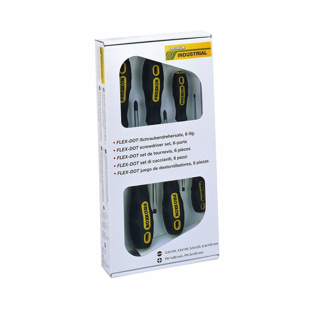 Zaobljena dvokomponentna drška s fleksibilnim „FLEX-DOT“ ispupčenjima koja omogućuju dugotrajan rad bez umaranja i bolova. Dobro leži u ruci i kod brzog prihvata. Uravnoteženi dizajn omogućuje veliku silu okretaja i pritiska u horizontalnom i vertikalnom položaju.Simbol na vrhu ručice označava veličinu odvijača za lakšu identifikaciju. Praktična rupa u odvijaču kako bi se odvijač mogao odložiti na nosač. Drška je izrađena od specijalne gume koja nije ljepljiva i otporna je na ulja i kiseline. Utor za prste dizajniran za bolji rad sa odvijačem. Jednostavno očitanje veličine odvijača. Obilježja na odvijaču nanesena laserskom tehnikom. Odvijač izrađen od visoko kvalitetne legure kroma, mangana, mobildena i kaljenog čelika. Vrh odvijača obilježen crnom bojom , obrađen je za odličan prihvat vijaka. Također obrađen protiv proklizavanja.