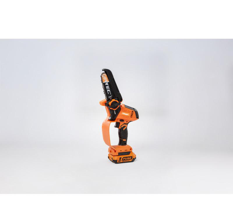 Akumulatorska lančana pila Villager FUSE VBT 0520-1BSC kompaktan je i praktičan alat namijenjen orezivanju i rezanju drvenih grana u vrtu, voćnjaku ili oko kuće. Pokreće je snažan elektromotor napajan 18 V Li-ion baterijom, koji omogućuje stabilan rad i učinkovito rezanje uz minimalne vibracije. Zahvaljujući vodilici duljine 155 mm i brzini lanca od 5,6 m/s pila omogućuje brzo i precizno rezanje manjih grana i drvenog materijala. Ergonomski soft-grip rukohvat osigurava sigurno i udobno rukovanje, dok kompaktna konstrukcija omogućuje jednostavnu kontrolu tijekom rada. Alat je dio Villager FUSE baterijskog sustava, što znači da je kompatibilan s različitim FUSE baterijama i punjačima. Uređaj se isporučuje u praktičnom koferu zajedno s 18 V / 2 Ah baterijom, FUSE punjačem 2.4 A i štitnikom lanca, pa je odmah spreman za rad.
