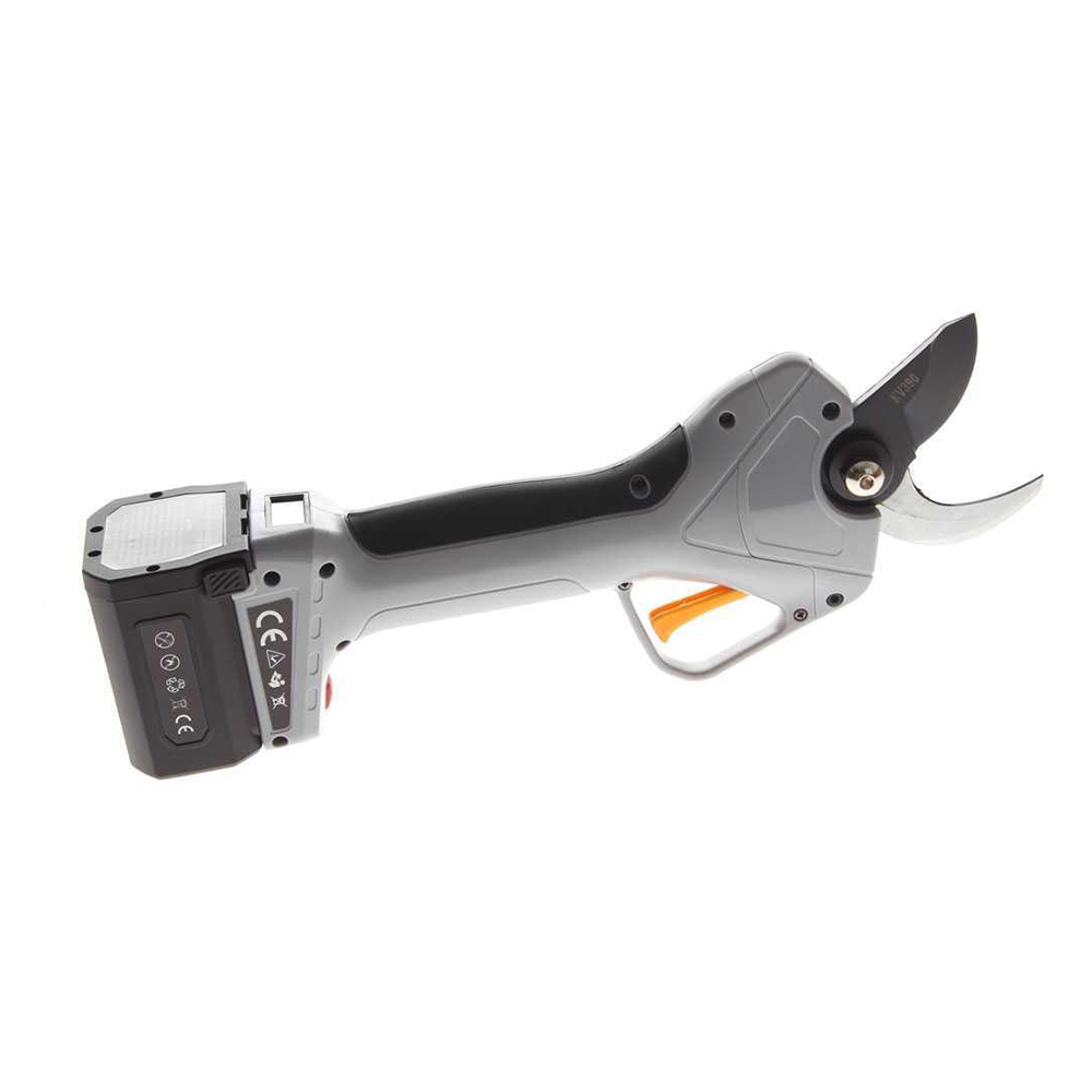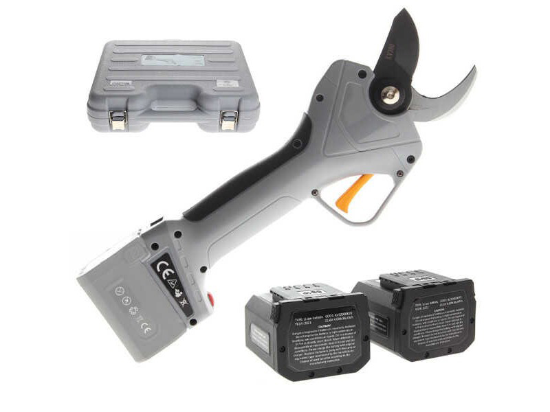 KV390 je najnovija bežična elektronička škare s punjivom litijskom baterijom i progresivnim rezanjem visoke učinkovitosti od VOLPI ORIGINALE. Oštrice su izrađene od čelika i teflona, s dvije pozicije otvaranja: pogodne za obrezivanje (parkovi, vrtovi i poljoprivreda) te za širok raspon primjena. Maksimalno otvaranje oštrica je 40 mm, a težina od samo 0,87 kg omogućuje udoban i beznaporan rad. Opremljene su motorom bez četkica, a funkcija brzog stanja pripravnosti štedi energiju baterije kada se ne koristi. Inovativni zaslon s brojačem ukupnih i parcijalnih rezova omogućuje praćenje izvedenih rezova, dok indikator napunjenosti baterije omogućuje svjesno upravljanje tijekom rada. Škare dolaze u praktičnoj kutiji koja štiti sve elemente, a opremljene su s dvije premium litijske baterije, trostrukim punjačem, futrolom i setom za popravak.
